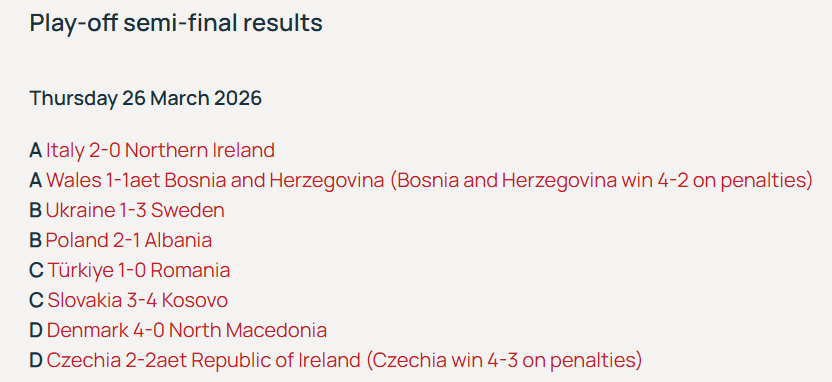 Each match carried enormous weight, as the winners advanced to the playoff finals while the losers saw their World Cup dreams end abruptly. With only a handful of qualification spots remaining, the margin for error is nonexistent, defeat means elimination, while victory keeps World Cup hopes alive.